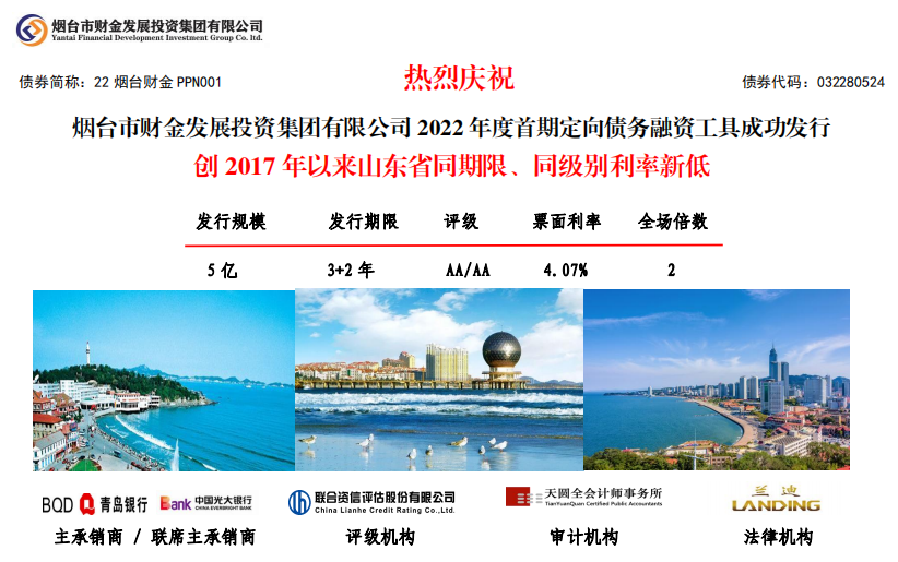 煙臺財金集團2022年度首期PPN成功發(fā)行